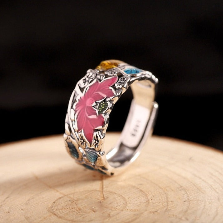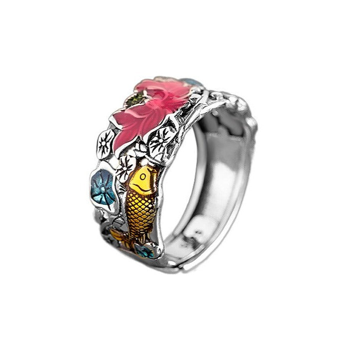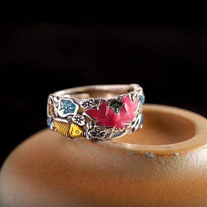 Anel Flor de Lótus com Carpa Koi em Prata 925