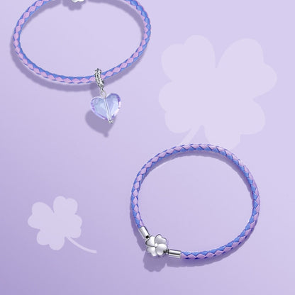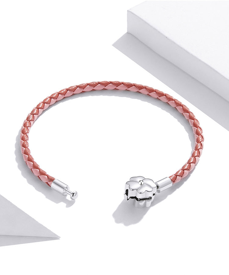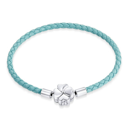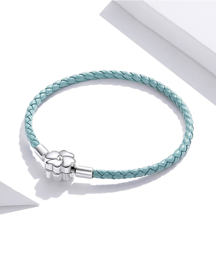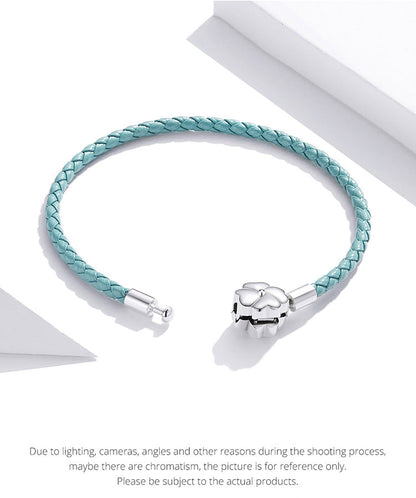 Pulseira trevo de quatro folhas em couro e prata 925