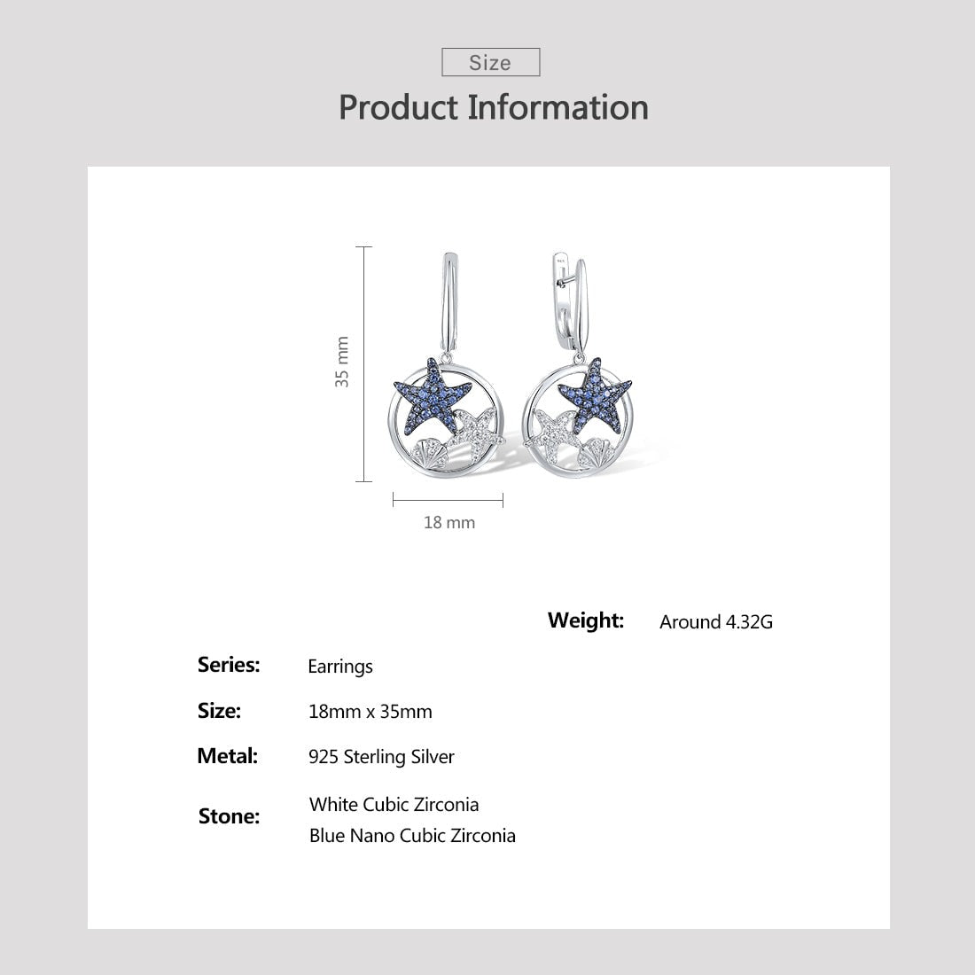 Brincos Estrela do Mar em Prata 925 e Zircônias